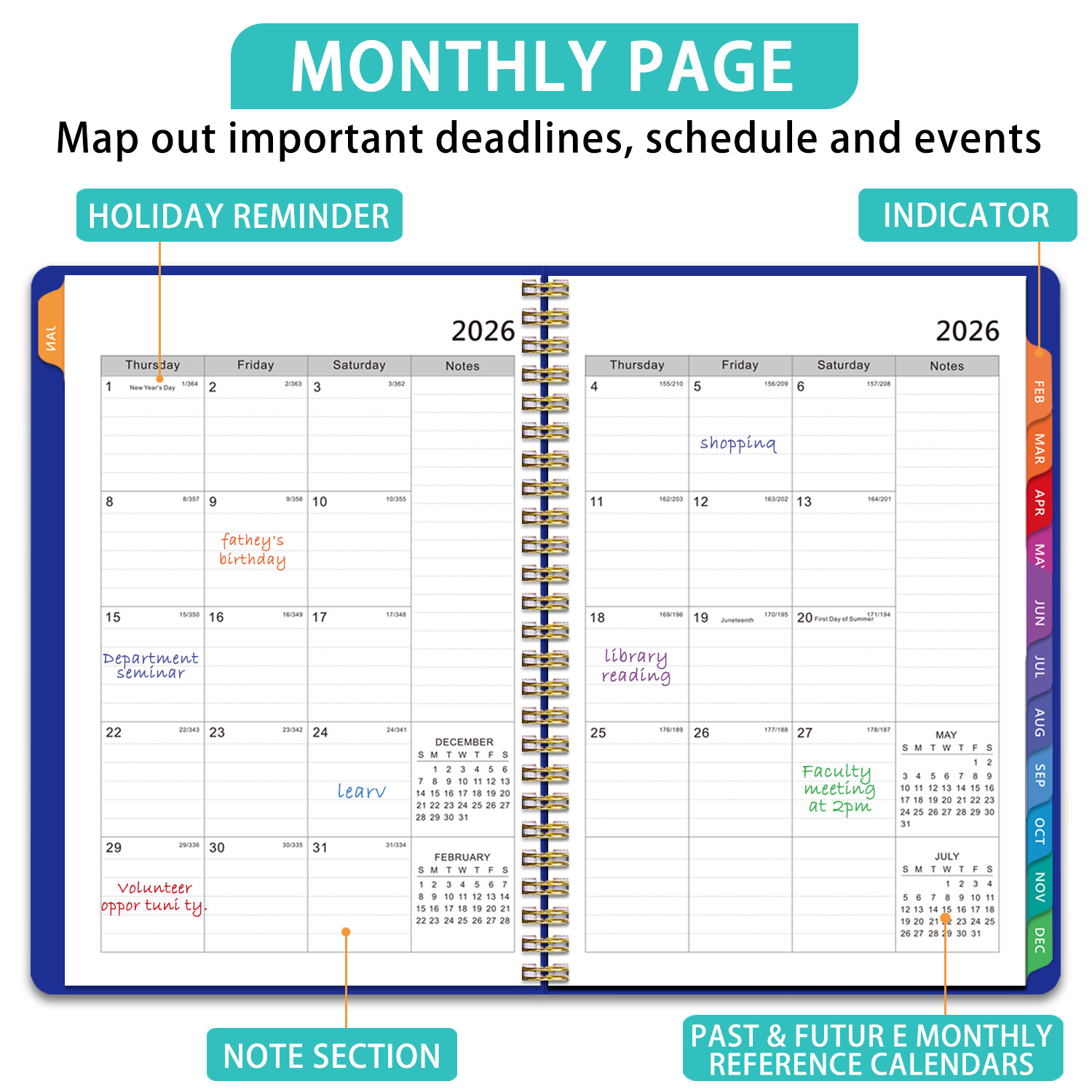 OZ399 2026 Planner Hardcover Calendar Weekly and Monthly with Tabs